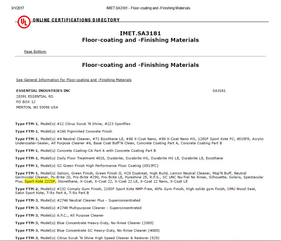Sportkote運動地板漆面系統(tǒng)是美國Essential工業(yè)集團出品。美國Essential工業(yè)集團是成立于1898年的百年企業(yè),是全球頂級的新型聚合物及合成樹脂供應商,為涂料及清潔行業(yè),軍工行業(yè)提供關鍵原料及合成技術,也是寶潔公司及美國高端軍工產品,航空航天產品的供應商。