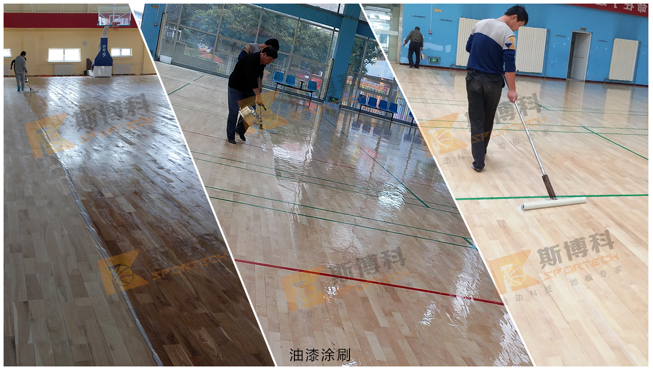 拋光重涂將使您的運動木地板保持足夠的光澤和防滑摩擦力,保證運動員的安全。在性能合格的運動木地板上吱吱作響的鞋子,就意味著你的運動員獲得了恰當(dāng)?shù)哪Σ亮?,并且不太可能滑倒。每次在電視轉(zhuǎn)播上觀看NBA比賽,球員鞋子與地板摩擦的吱吱聲不絕于耳,這是高性能運動木地板場地應(yīng)有的表現(xiàn)。NBA場地的比賽地板,在每個賽季前都必須對地板進(jìn)行一次拋光重涂處理,以確保地板漆面的光亮度和防滑性能。