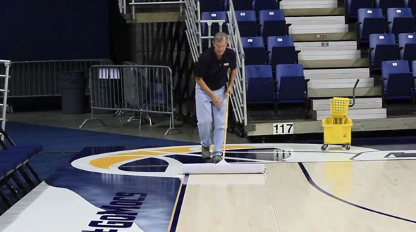 1、每日對場館木地板進(jìn)行普通清潔。 ?2、館內(nèi)有脫落的膠紙、口香糖 ? 3、可樂、果汁等飲料印跡 ?4、漆面淺層鞋印、輪印 ? 5、灰塵雜物
