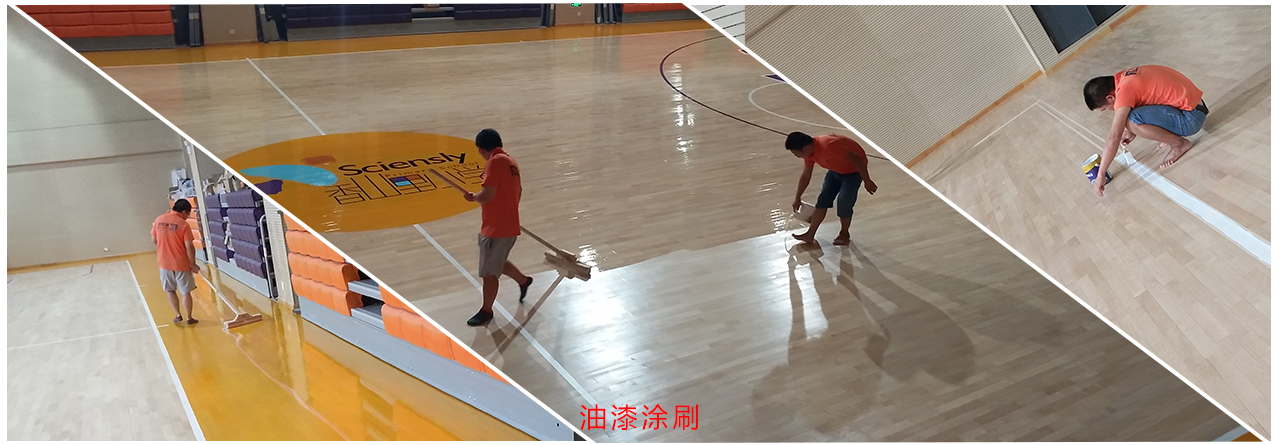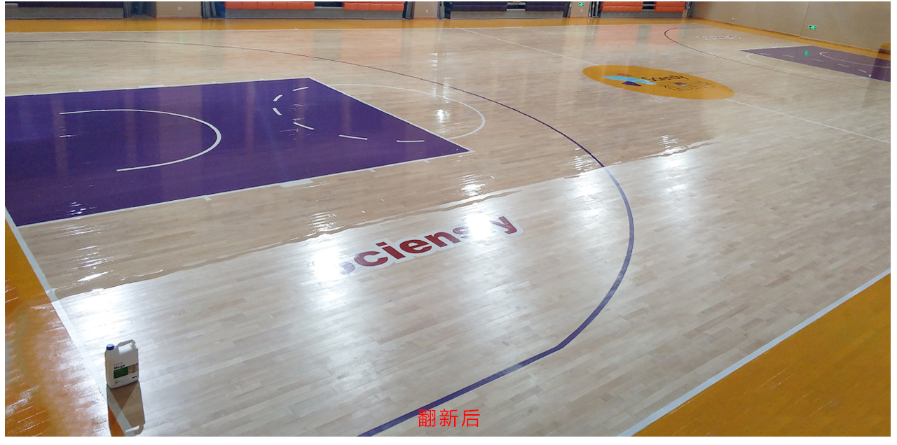 該場館內(nèi)運(yùn)動木地板使用非專業(yè)油漆導(dǎo)致地板表面摩擦系數(shù)變小,地板表面打滑嚴(yán)重!