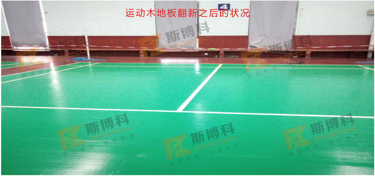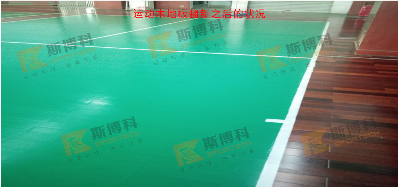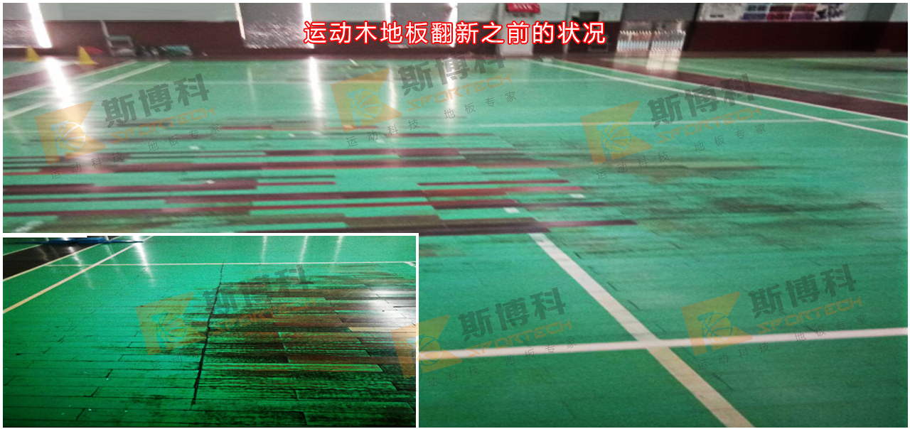 該場館地板長時間使用漆膜已經(jīng)嚴重磨損,地板木質層已經(jīng)磨損,長時間沒有保養(yǎng)局部出現(xiàn)瓦變情況運動木地板翻新之前的狀況