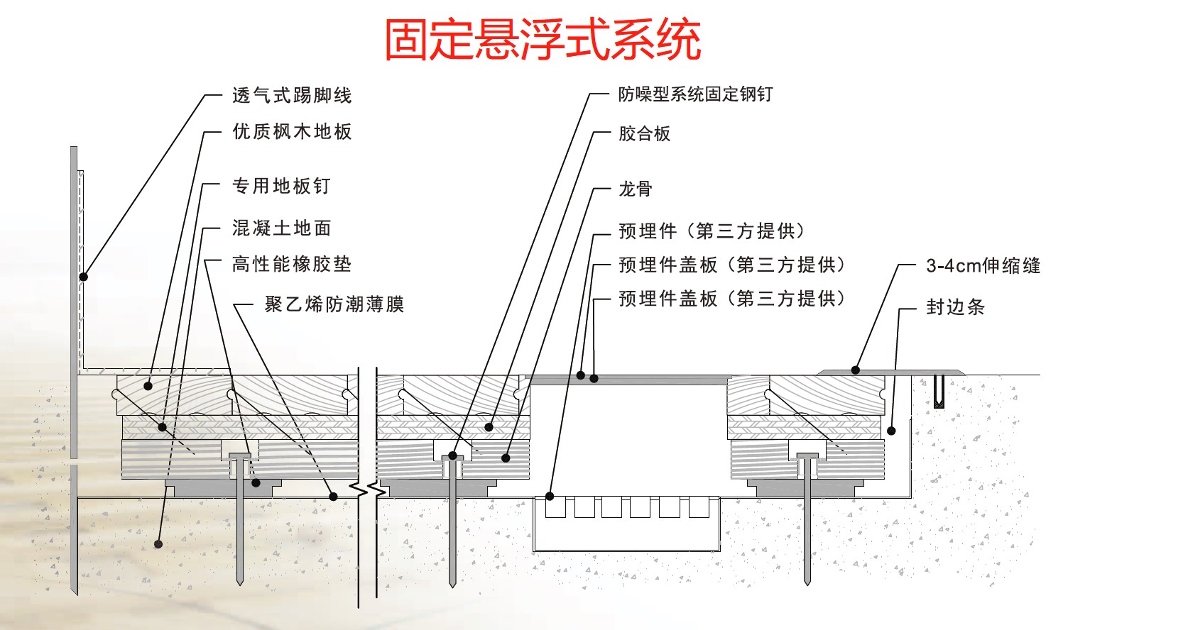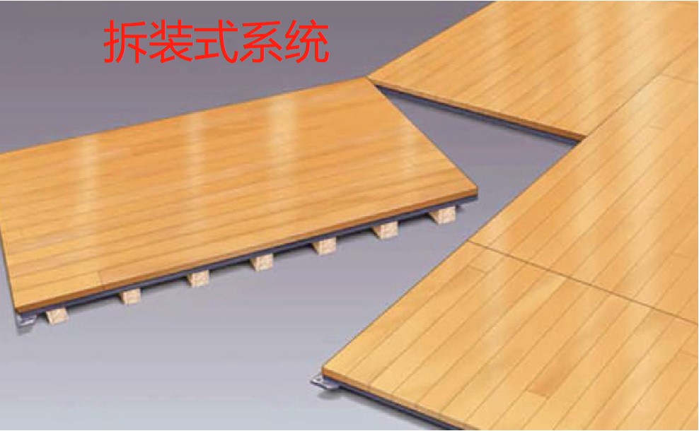 專業(yè)運動木地板一般由漆面、面板、層板、龍骨、彈性墊組成,其中層板、龍骨及彈性墊統(tǒng)稱為底部結(jié)構(gòu)。按照底部結(jié)構(gòu)的鋪裝方式和固定形式,可將運動木地板分為懸浮式系統(tǒng)、固定懸浮式系統(tǒng)和拆裝式系統(tǒng)。目前市面上基本每個品牌廠家,都有不同結(jié)構(gòu)的運動地板產(chǎn)品,不同的結(jié)構(gòu)設(shè)計,可以讓地板獲得不同的技術(shù)性能參數(shù),適合于不同的球類運動需要和不同場館的地面標(biāo)高需求。比如排球、羽毛球場地,球員彈跳頻繁,為保護(hù)運動員關(guān)節(jié)所受到的沖擊力,應(yīng)該選用沖擊吸收性能較好的懸浮式地板系統(tǒng);籃球館,球員需要地板具備最佳的球體反彈性能,則應(yīng)選用固定懸浮式的地板系統(tǒng);訓(xùn)練級別的場館,在滿足基本的六大運動性能指標(biāo)前提下,應(yīng)考慮采用沖擊吸收性能更加的地板,最大限度保護(hù)長期在館內(nèi)訓(xùn)練的球員免受運動損傷,延長運動壽命;競賽級別的場地,為減少運動過程中的能量損失,最大限度發(fā)揮運動員的競賽水平,,建議采用沖擊吸收及垂直變形較小的地板,這也是為什么