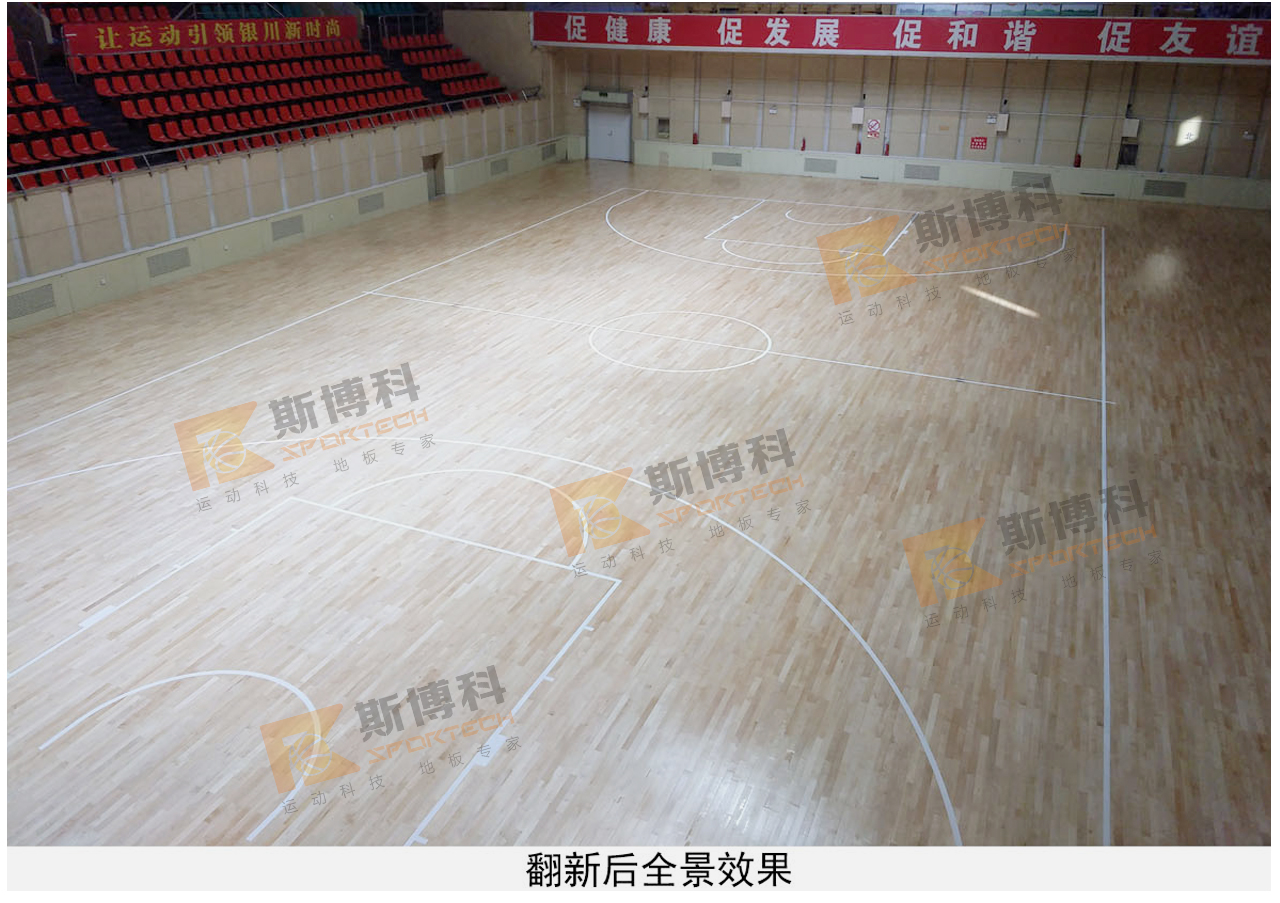 斯博科體育通過(guò)采用運(yùn)動(dòng)木地板整體打磨翻新方案,消除地板劃痕污損,重新涂刷油漆恢復(fù)地板漆面光亮防滑效果,滿足專業(yè)運(yùn)動(dòng)需求;整改木地板預(yù)留通風(fēng)口,消除通風(fēng)口間隙,避免雜物掉落。