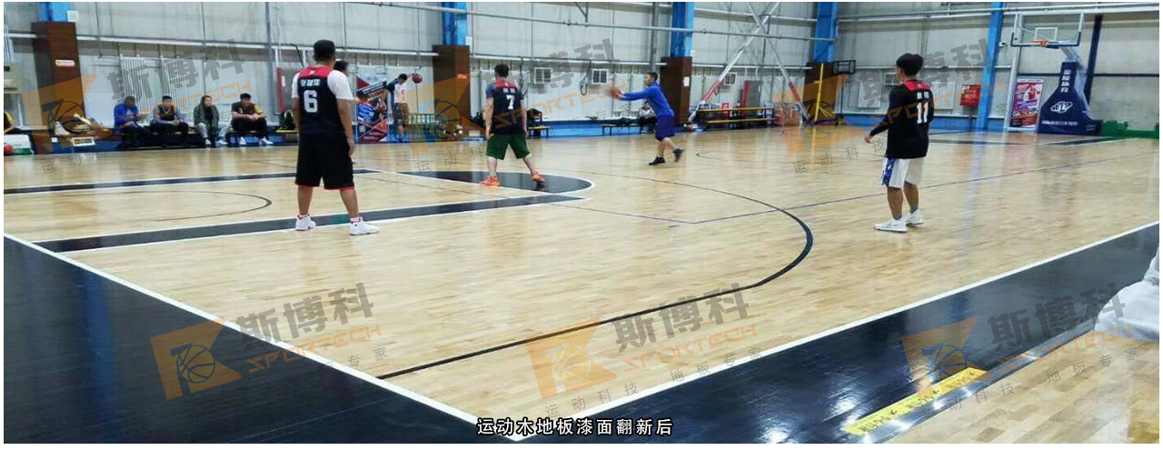北京勝古體育館運(yùn)動(dòng)木地板翻新油漆采用斯博科SportKote進(jìn)口水性運(yùn)動(dòng)地板漆,在極度緊張的工期下實(shí)現(xiàn)今天刷漆明天打球的任務(wù)。斯博科專(zhuān)業(yè)水性運(yùn)動(dòng)地板漆獨(dú)特的快干功能,可確保最后一遍油漆涂刷過(guò)后24小時(shí)即可正常使用。