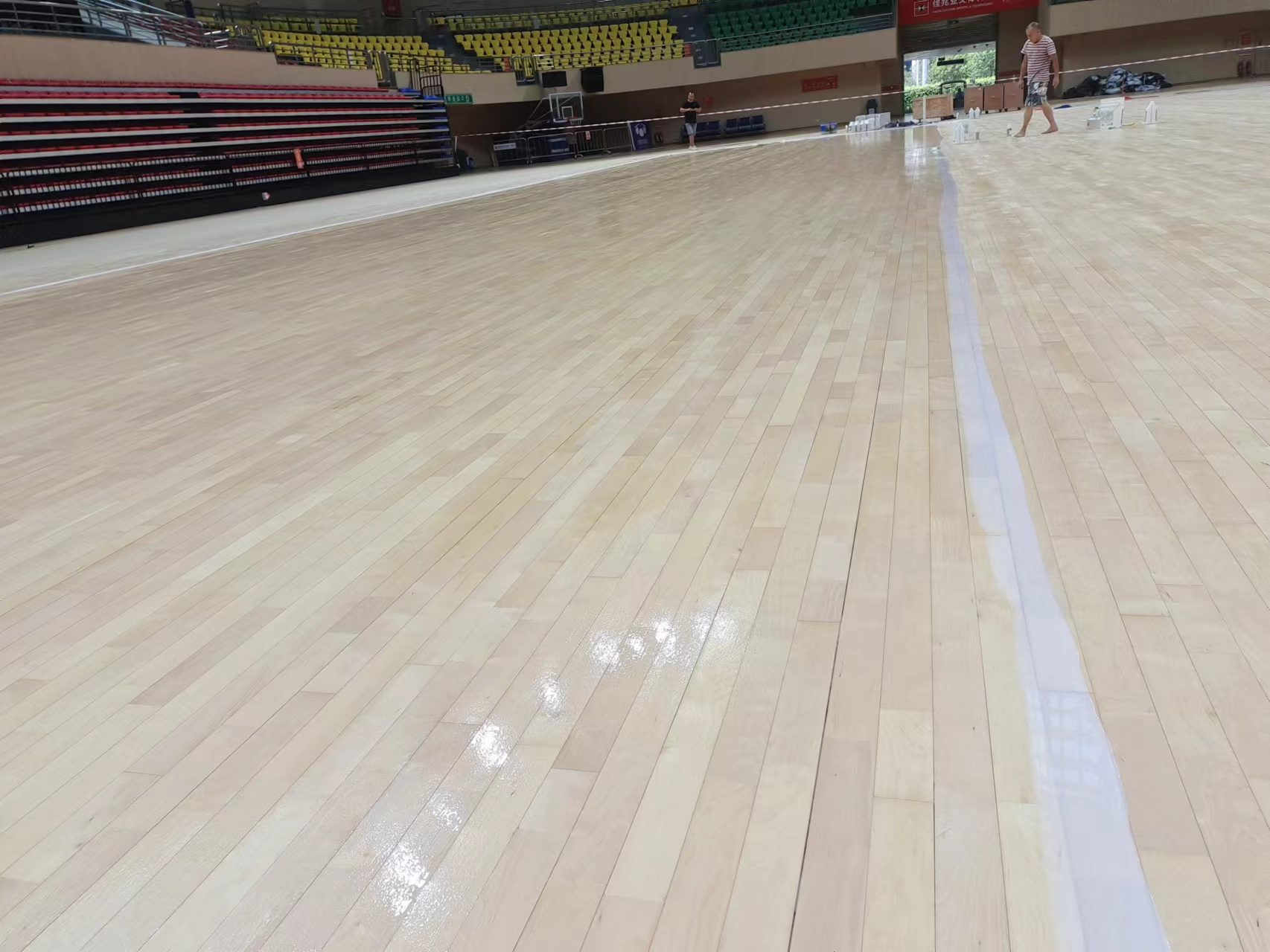 體育館內(nèi)設有室內(nèi)體育運動籃球場,館內(nèi)運動木地板需要打磨涂刷運動木地板防滑漆,選用了深圳市斯博科體育實業(yè)有限公司的專業(yè)運動木地板維保翻新團隊,采用運動木地板深度清潔保養(yǎng),重新涂刷美國Sportkote專業(yè)運動木地板油漆,該油漆是通過國際籃聯(lián)FIBA認證的專業(yè)運動木地板防滑漆,滿足DIN18032防滑標準徹底解決籃球木地板打滑問題,深圳斯博科體育致力于提供國際一流品質(zhì)的體育木地板翻新保養(yǎng)服務