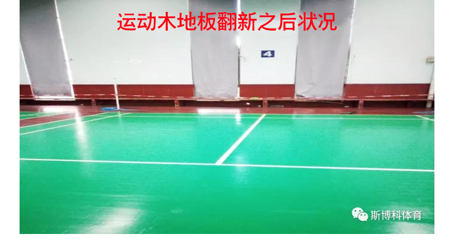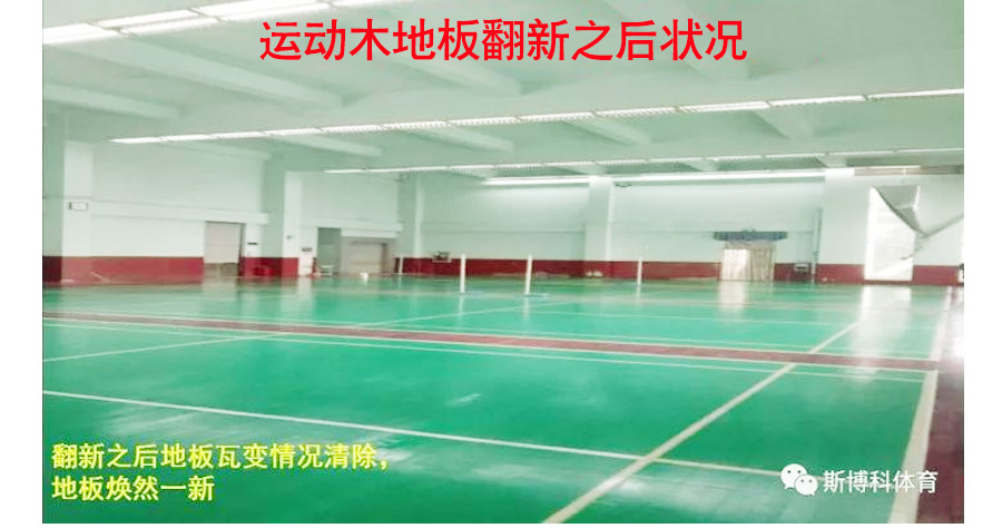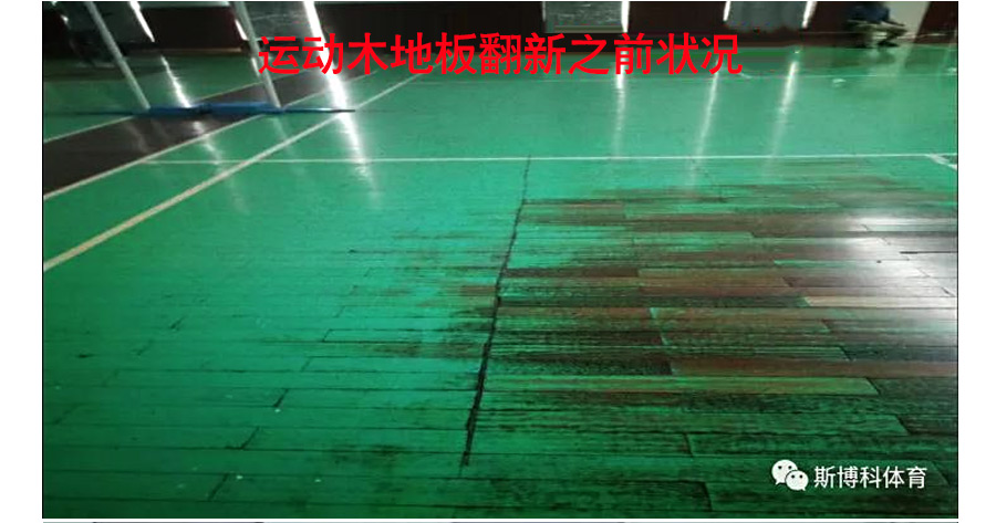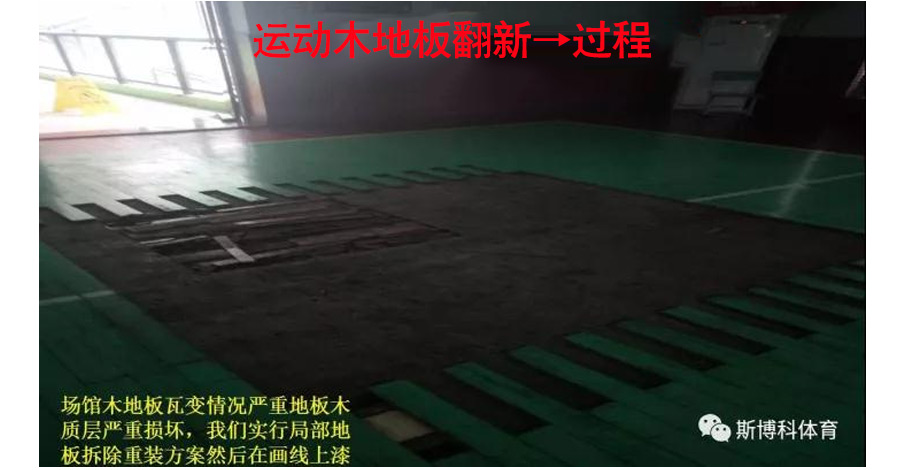 翻新流程:先對(duì)場(chǎng)館整體進(jìn)行打磨翻新,局部地板長(zhǎng)期浸水,木質(zhì)層已經(jīng)膨脹有腐壞現(xiàn)象,局部地板拆除重裝,使用美國(guó)進(jìn)口NBA場(chǎng)館專用油漆(Sportkote)對(duì)地板進(jìn)行整體上漆,之后進(jìn)行拋光處理。現(xiàn)已完工經(jīng)客戶驗(yàn)收投入正常使用。